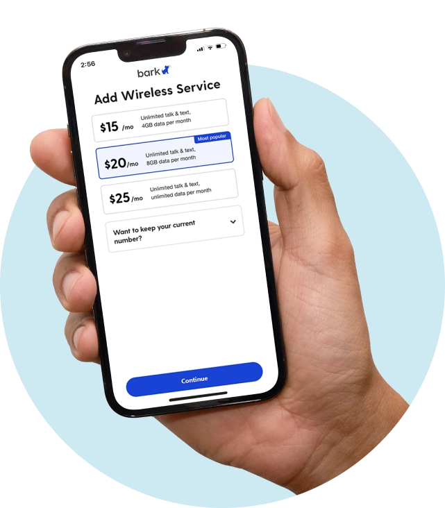Bark Wireless is a cellular service offered by Bark that works on your existing iOS or Android device. You don't need a Bark Phone or Bark Watch — just have the Bark App and qualify for our affordable wireless rates. Keep your own phone and number and get reliable wireless coverage starting at $15/month. This offering is an exclusive perk for Bark customers.