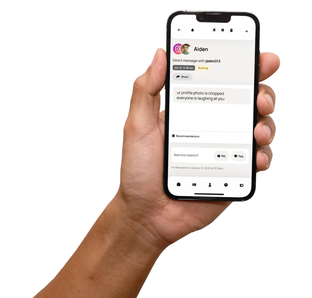 Bark scans texts, emails, social media, and apps on your child’s device for potential dangers and sends you alerts.
